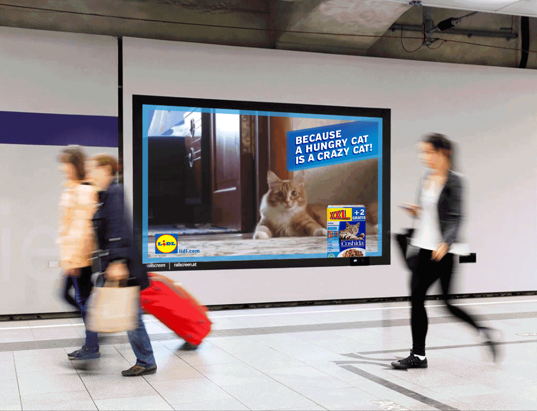 To draw more attention to the high quality pet food from Lidl, we developed digital billboards with a simple core message: A well fed cat is a better cat.